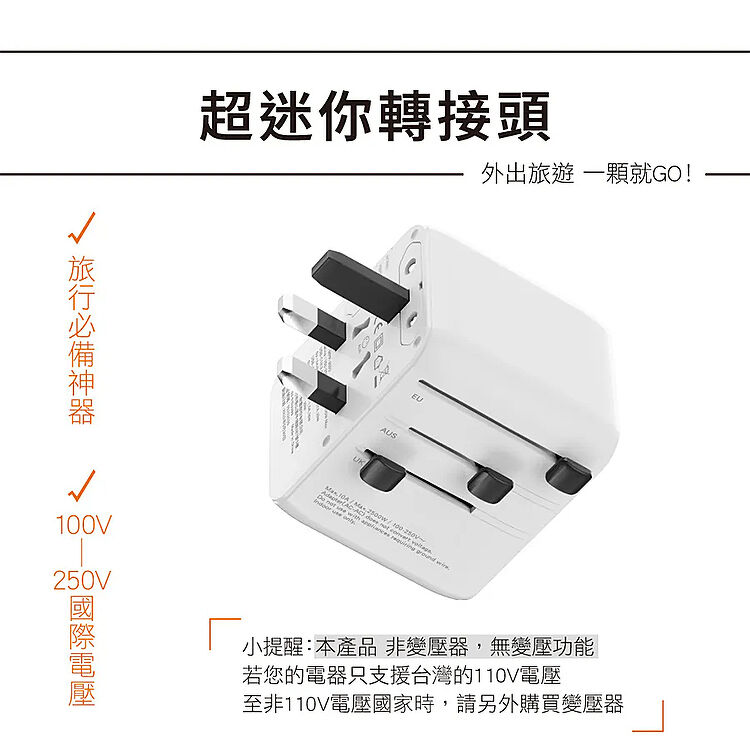 本商品適用100-250V電壓,僅支援插座變換不支援變壓功能