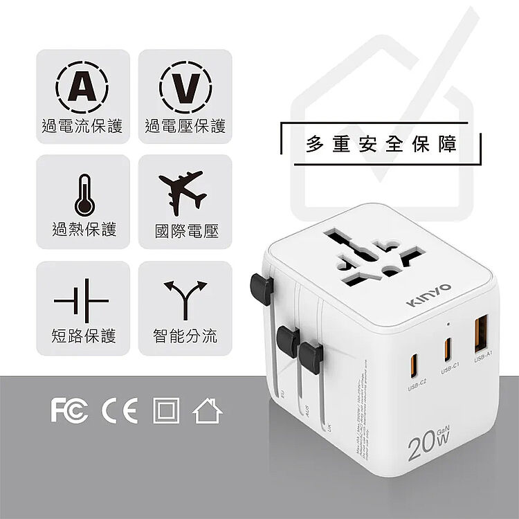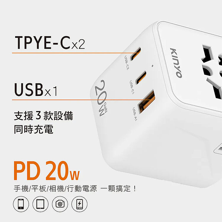 【KINYO】多合一雙插座萬國轉接頭20W(MPP-3520)
