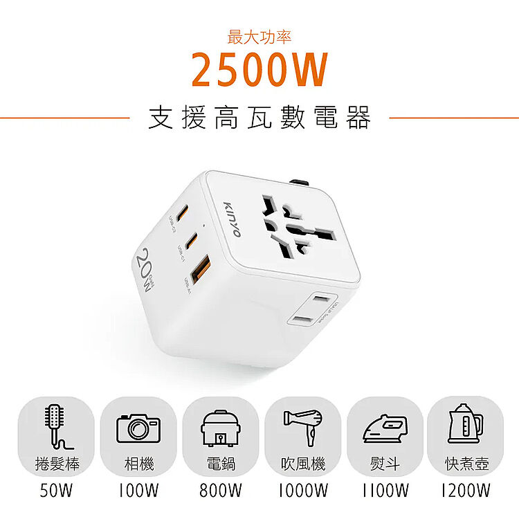 如有使用其他電器需求,請先確認使用電器自帶支援110-250V變壓再購買
