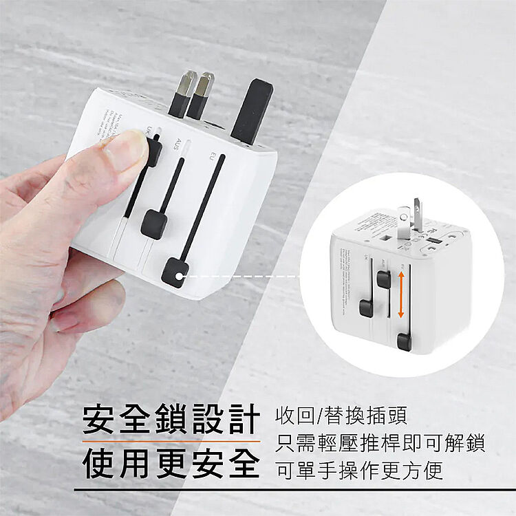 獨特雙AC設計,可同時轉接兩個2PIN插頭