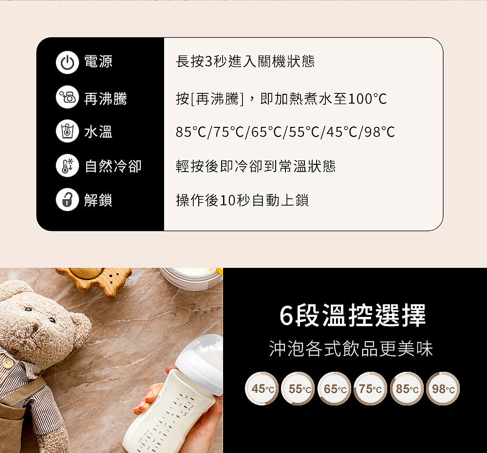 SUS304不鏽鋼壺身,典雅大方、衛生易清洗。