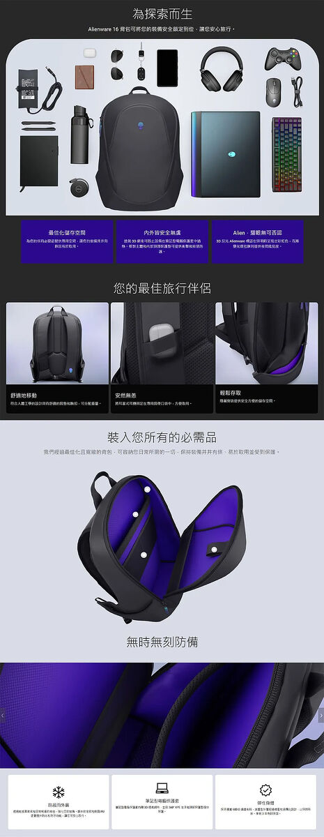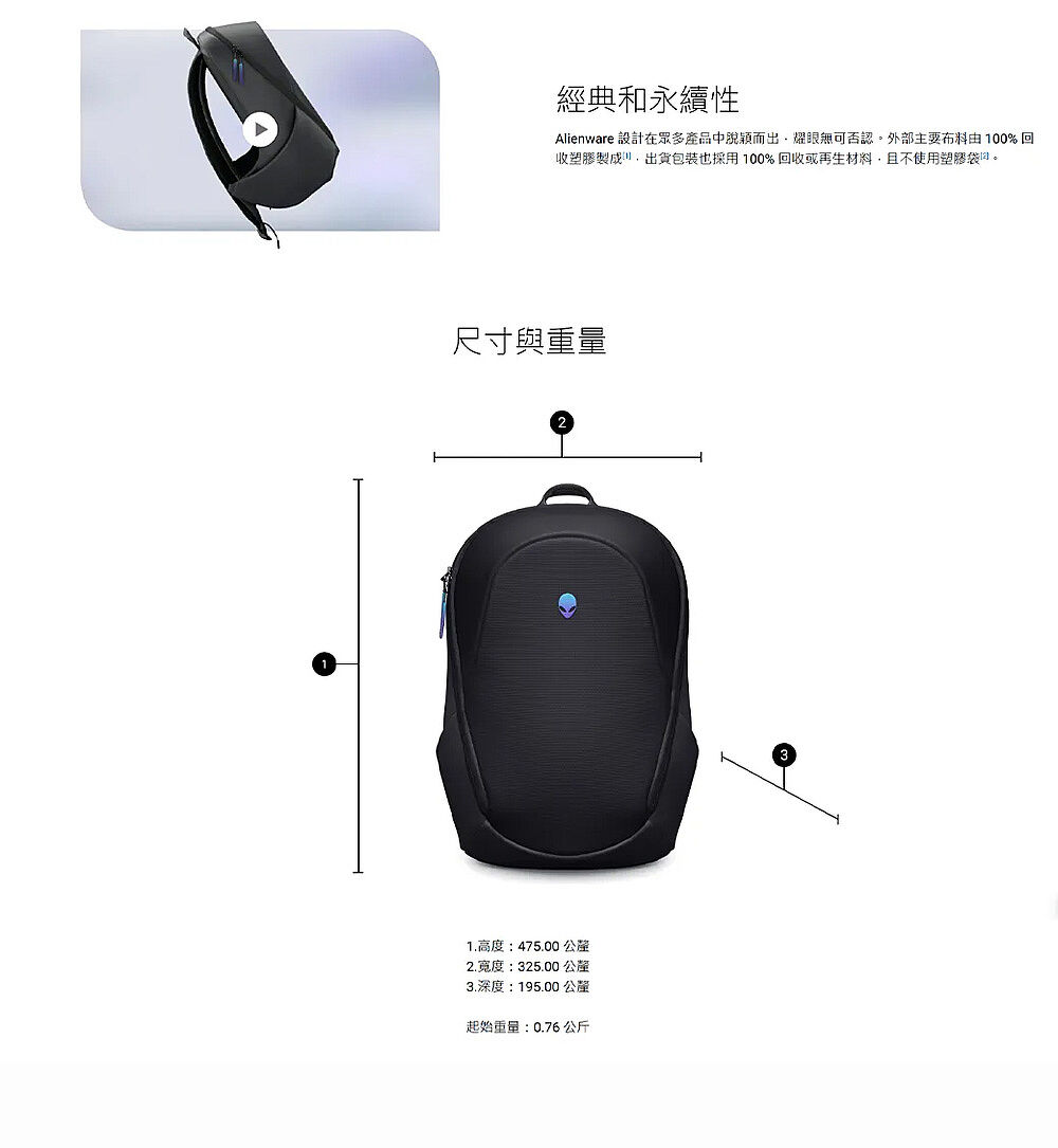 容量:最多 16 吋筆記型電腦(最大筆記型電腦尺寸:365 x 290 x 27 mm)