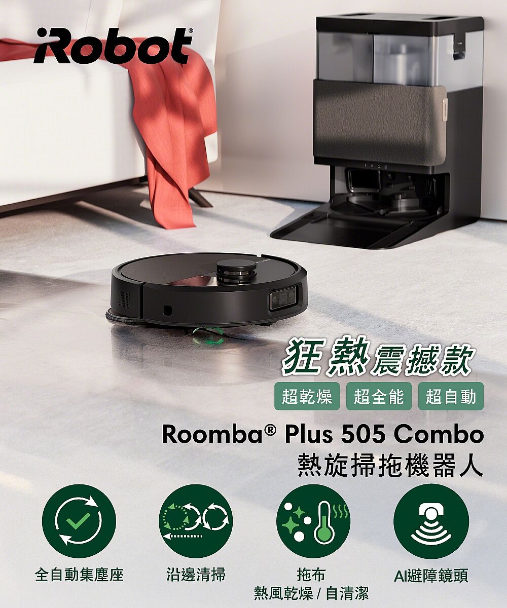 Roomba Plus 505 Combo 全能熱旋風延邊避障邊掃拖機器人功能