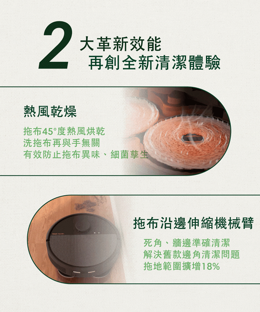 ★注意:使用掃拖與純拖功能必須注意地板濕度避免滑倒意外