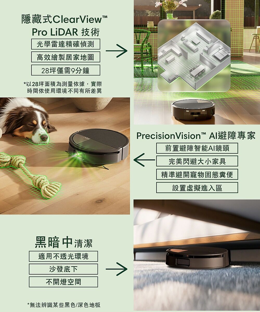 ■ LiDAR 光學雷達導航 (快速建圖+拖地時避開地毯+白天夜晚都可執行)