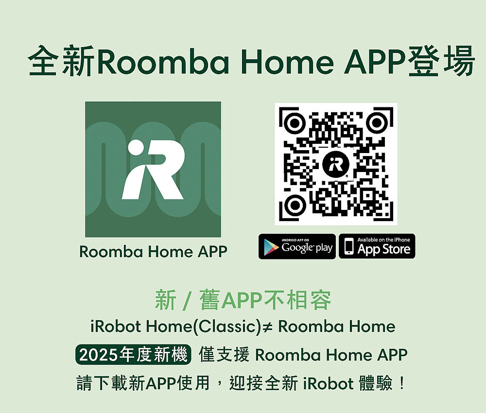 ★注意:機器人使用前需要使用Roomba Home App與WiFi連線完成設定才能後續使用