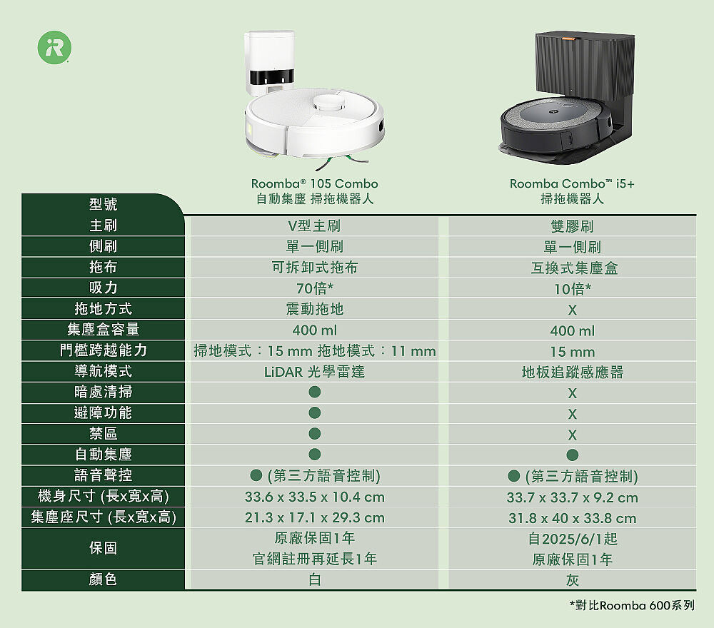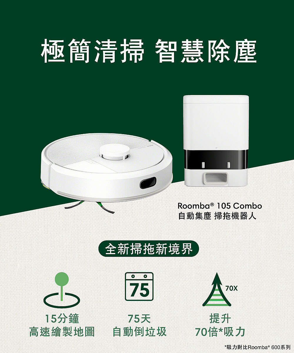 型號:Roomba 105 Combo自動集塵掃拖機器人