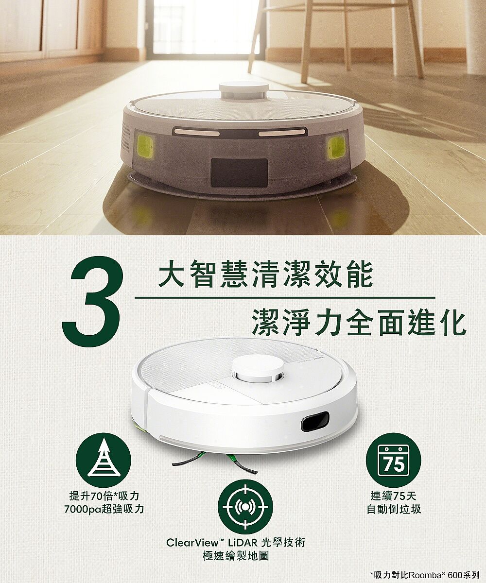 ■ 提升70倍吸力(與Roomba 500 600 700系列相比)