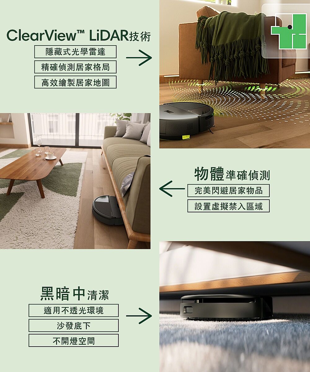 ■ LiDAR 隱藏式光學雷達導航 (快速建圖+精確偵測居家格局+完美閃避家物品+無光線也可執行)