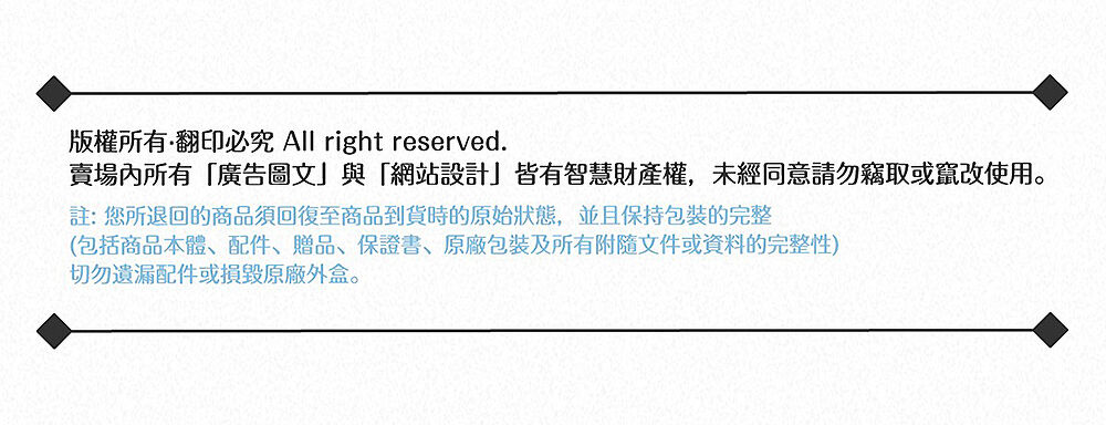 (含外包裝、配件等;產品一經註冊可能需要另外酌收額外的費用),且下單即視同同意上述條款,敬請再次確認,不便之處敬請見諒謝謝。》