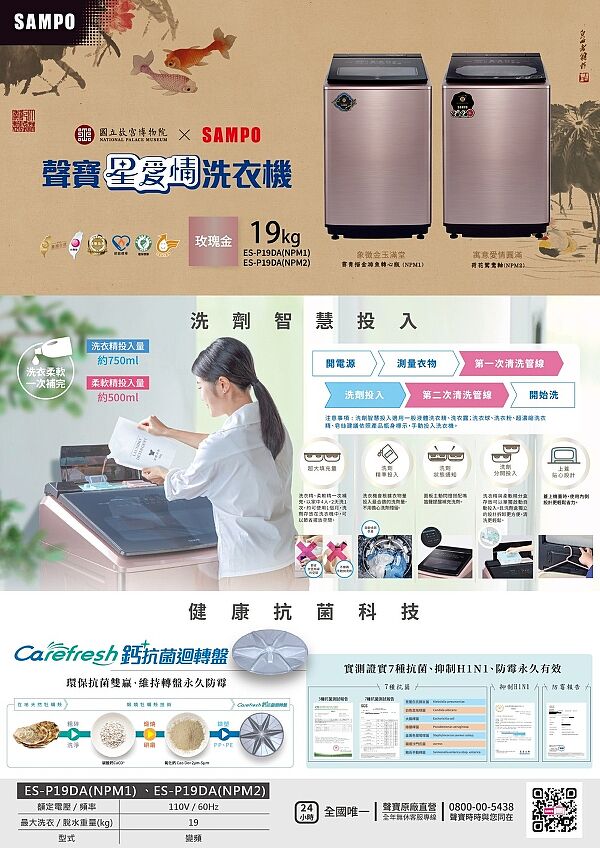 SAMPO 聲寶 19kg 洗劑智慧投⼊直立式變頻洗衣機(故宮聯名款)ES-P19D