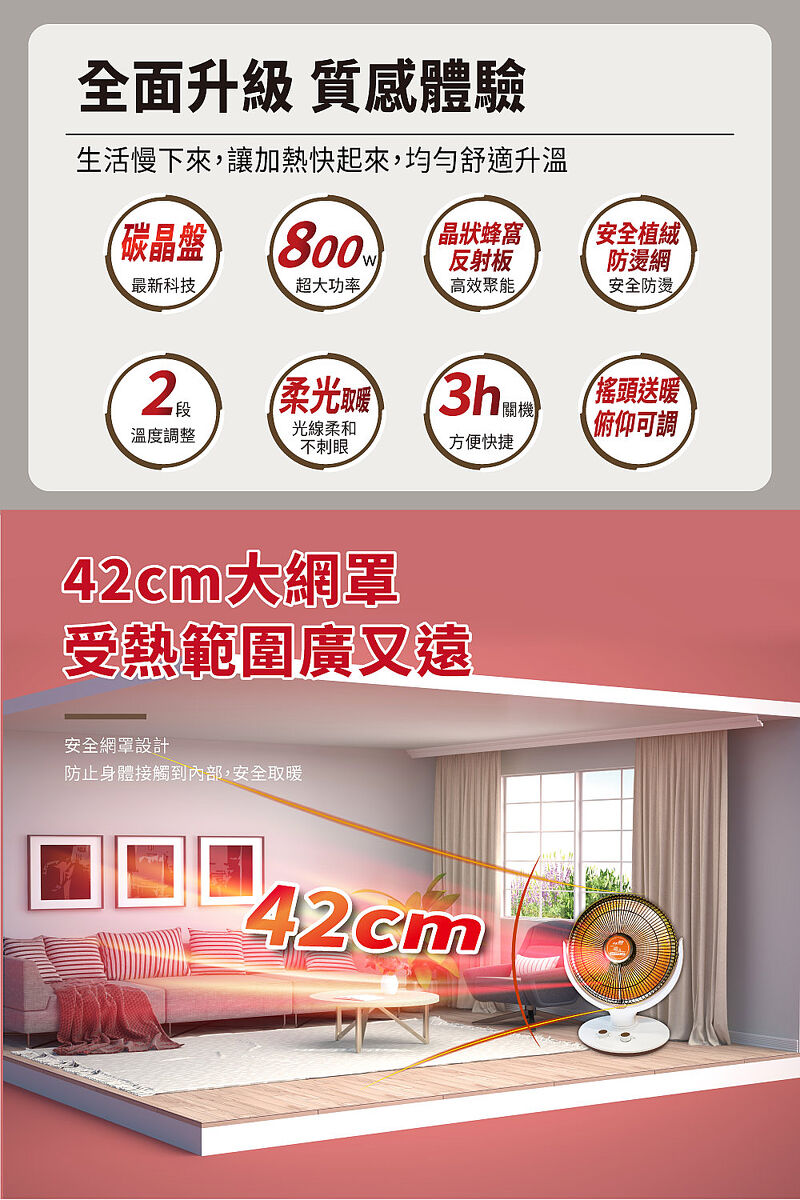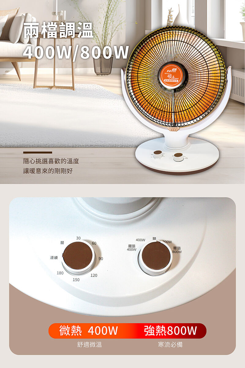 ● 2 種電熱選擇 (高溫800W/低溫400W)
