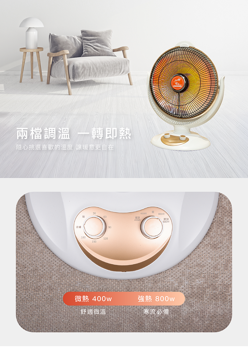 ● 2 種電熱選擇 (高溫800W/低溫400W)