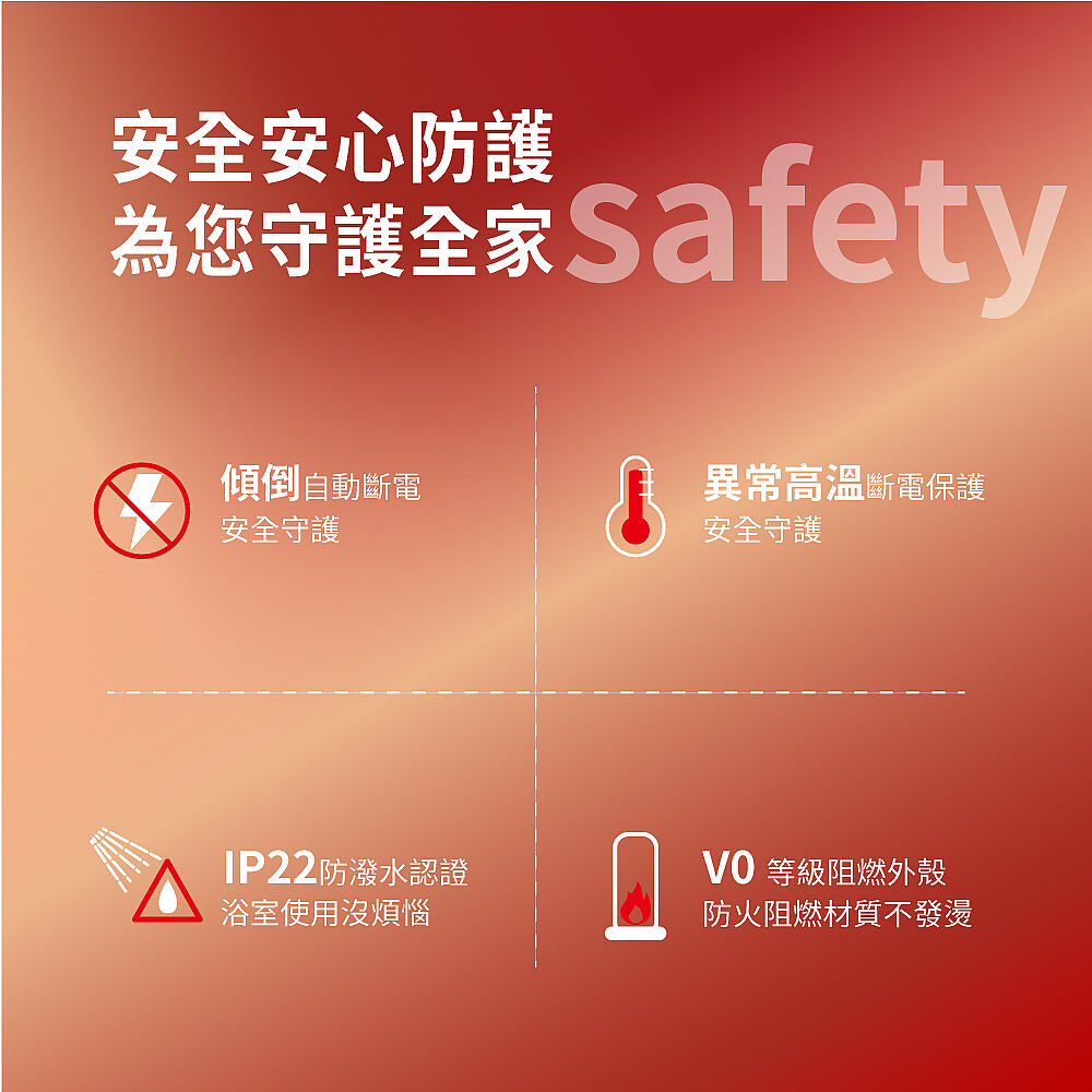 五段式溫度調整 恆溫省電、8小時自動斷電