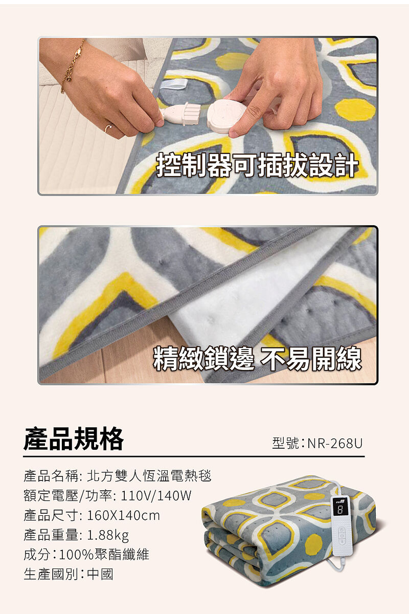 ●四重安全防護:過熱斷電、阻燃絕緣、短路保護、自動恆溫