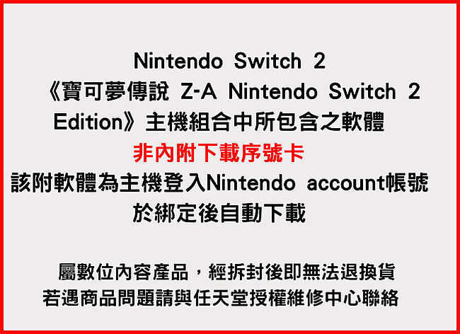 Switch2 NS2 寶可夢 Z-A 主機同捆組(數位下載版台灣公司貨)
