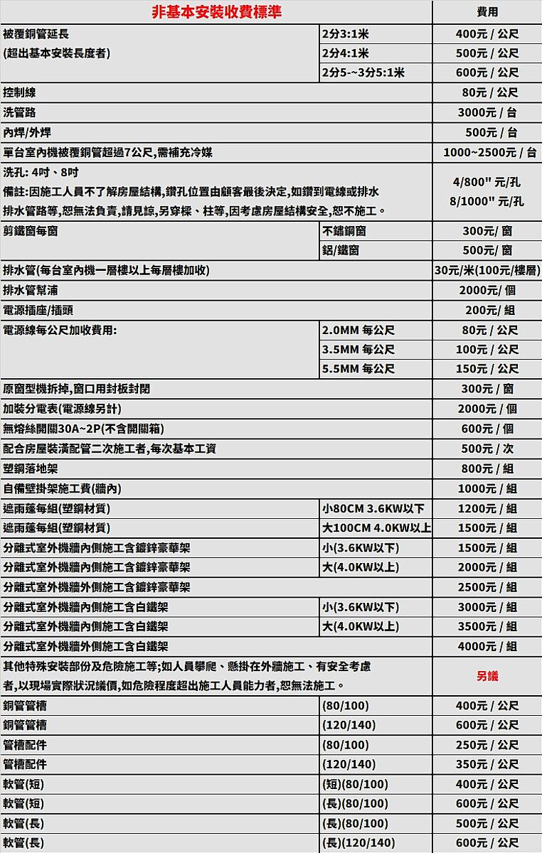 (9) 安裝商品在安裝人員正式安裝前,會現場評估安裝環境,若超出基本安裝範圍將以實際條件進行報價,並於施工完成後現場收取。