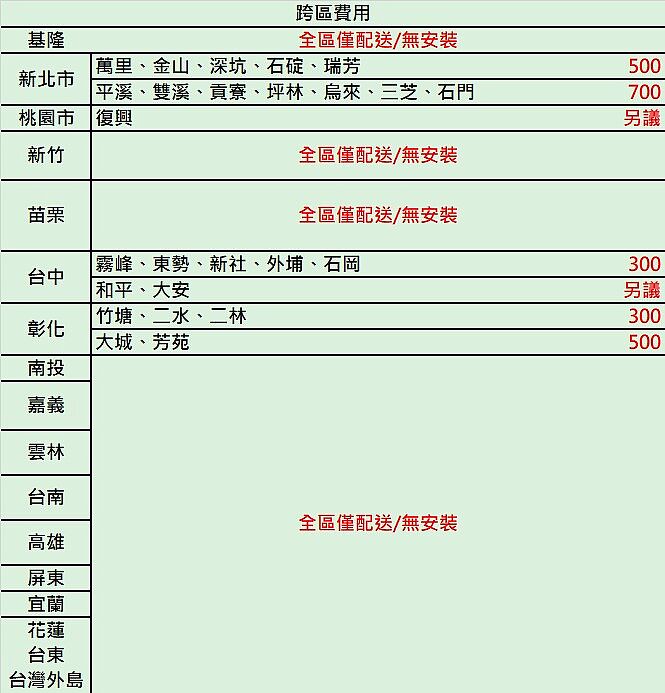 ◆ 價 格:含【配送】+【基本安裝】+【舊機回收】,舊機回收需另派車,如需舊機回收,請於訂單件地址欄位備註,將由廠商與您聯繫說明。