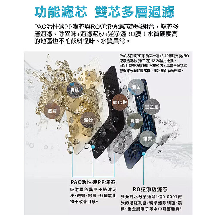 三通閥*1,板手x1,PAC活性碳PP濾芯*1,RO逆滲透濾芯*1※濾心放置於機體內