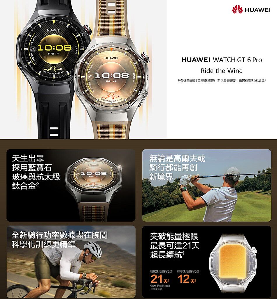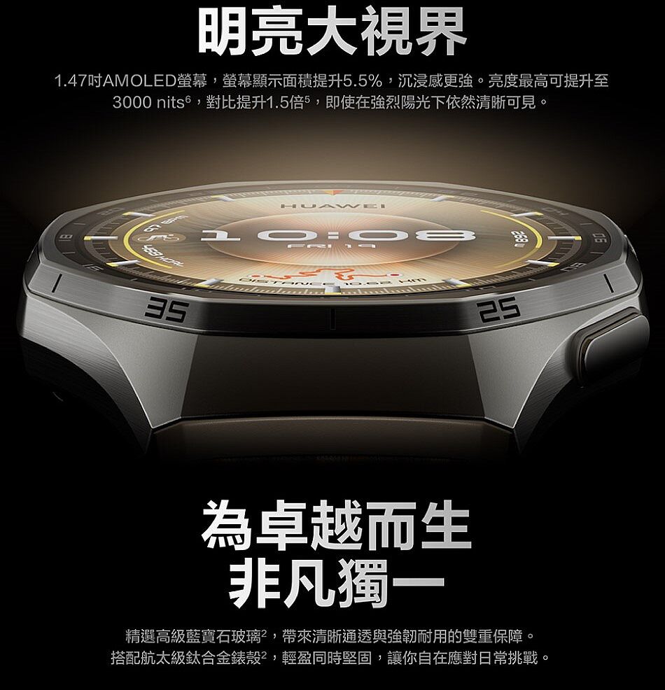 HUAWEI 華為 Watch GT6 Pro 46mm 鈦色鈦金屬錶帶 鈦空銀