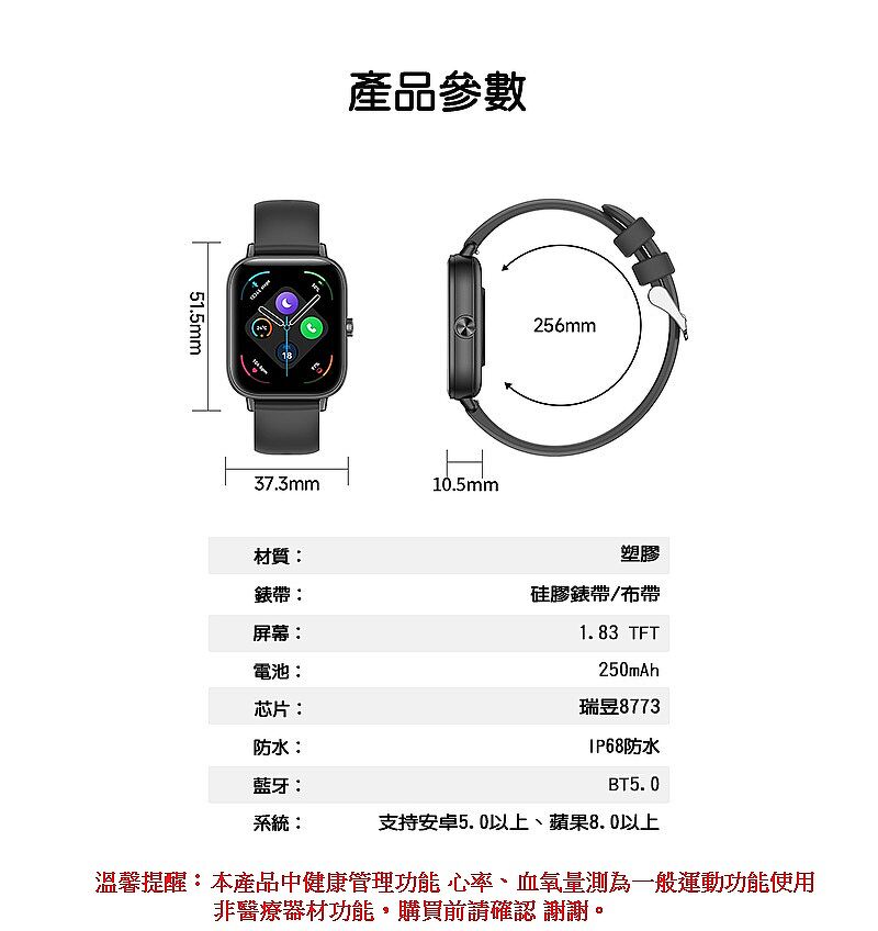 ・續航時間 5-7天 隨貨加贈皮革錶帶顏色隨機