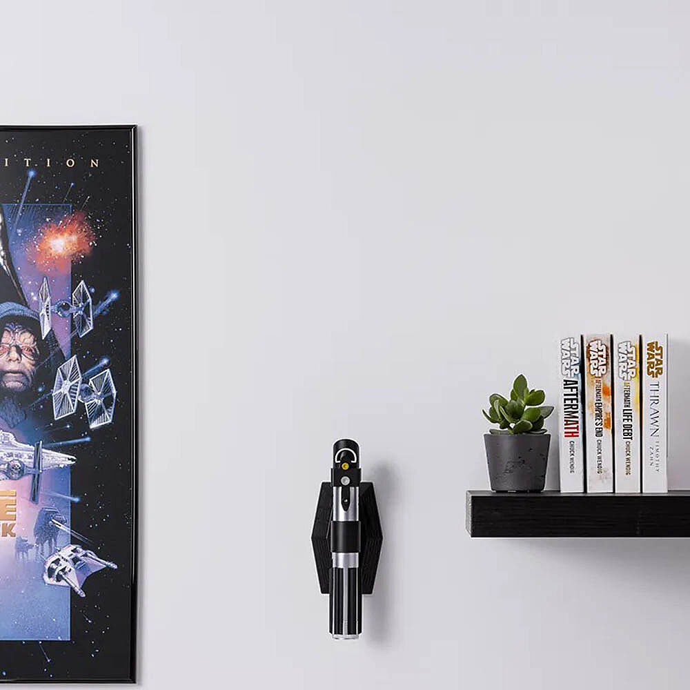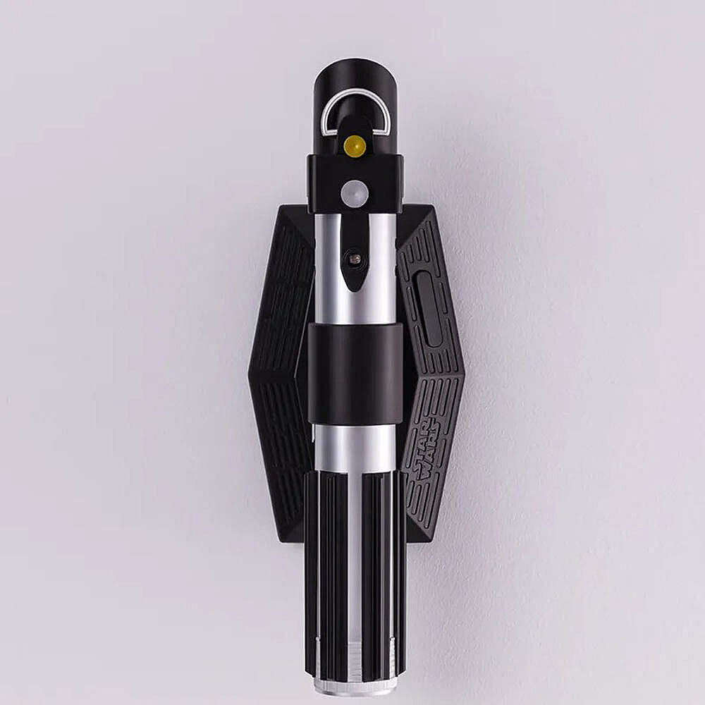 - 按壓開關會播放電影光劍啟動音效,亮燈後釋放出紅色投射光源