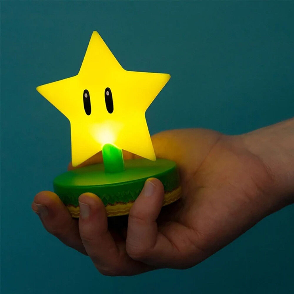 源於深受歡迎遊戲 《超級瑪利歐》的無敵星角色, 無敵星在《超級瑪利歐》遊戲內可以使瑪利歐變為無敵星狀態, 此時瑪利歐碰到的大部分敵人都會被消滅 ,無敵星角色讓大家留下美好回憶,此小夜燈勾起大家愉快童年回憶,自用送禮首選。產品有10公分高,使用2顆AAA電池操作 (不包括)。