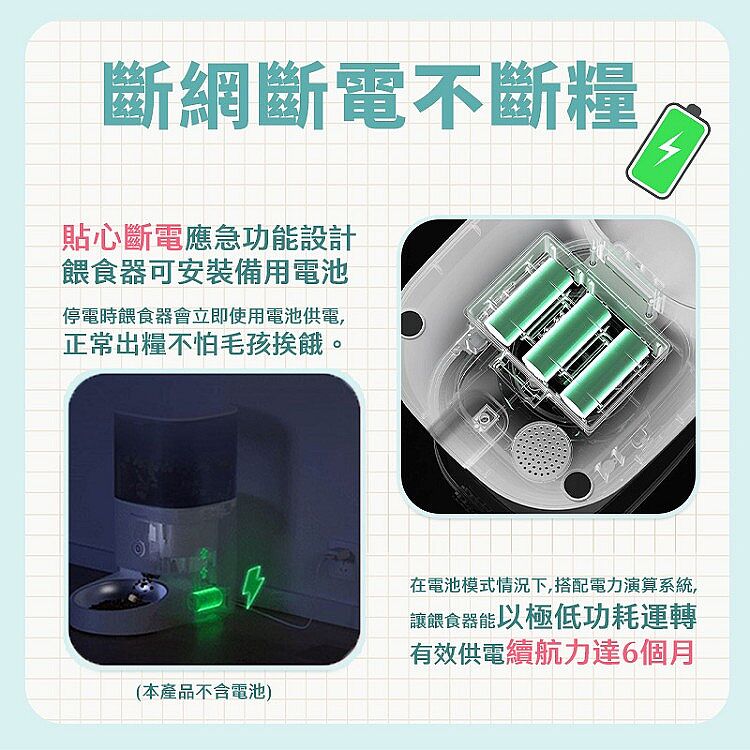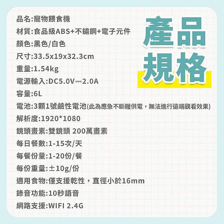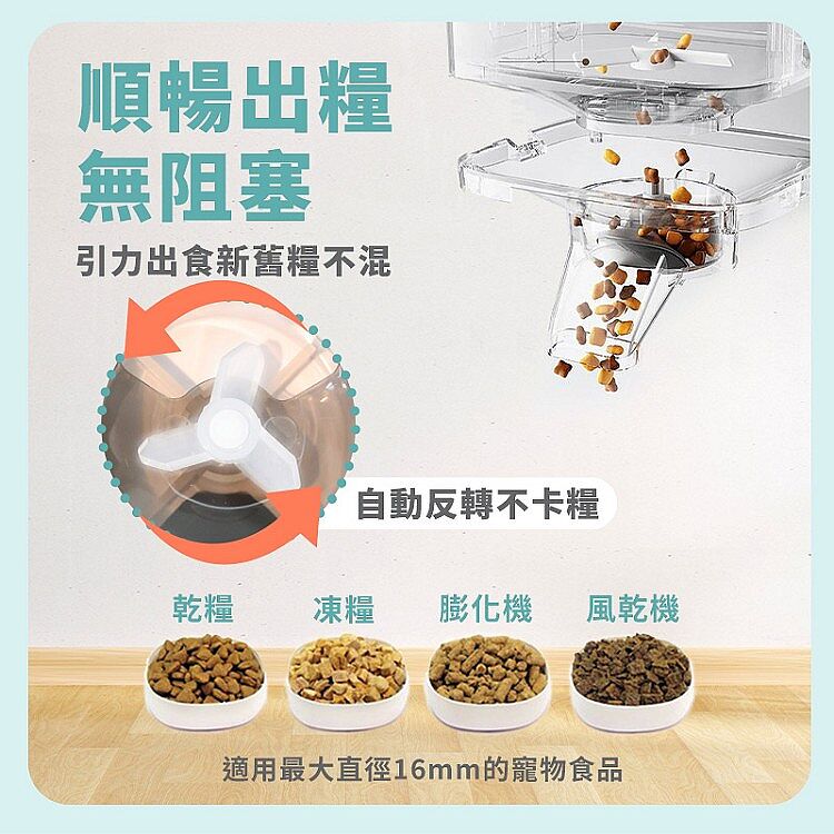 使用期間請飼主留意寵物是否有誤食飼料以外物品之情形,並定期清潔與檢查料槽內部是否有異物或殘留飼料,確保寵物食用安全。