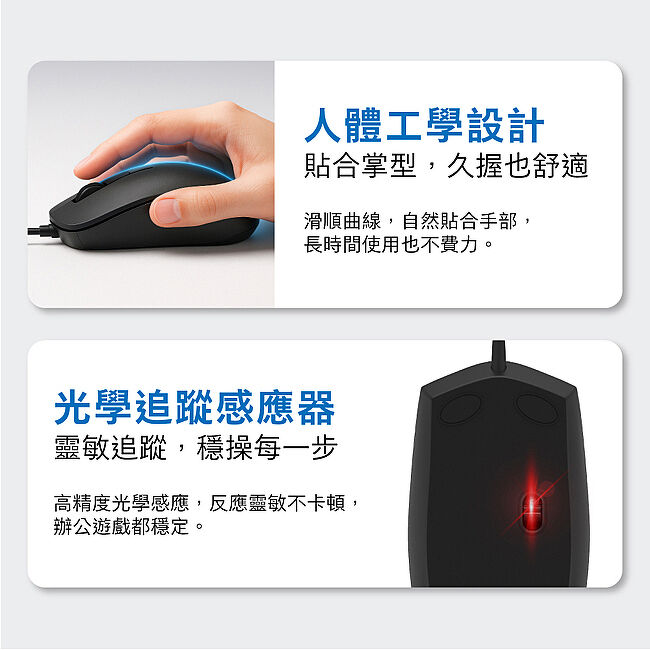 .高精度光學感應,反應靈敏不卡頓,辦公遊戲都穩定