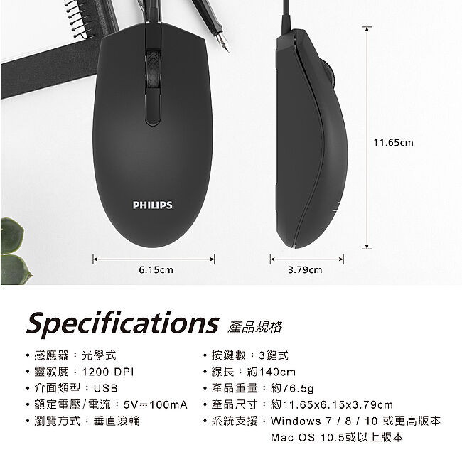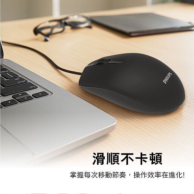 PHILIPS 耐用五百萬次點擊3鍵式有線滑鼠-SPK7204