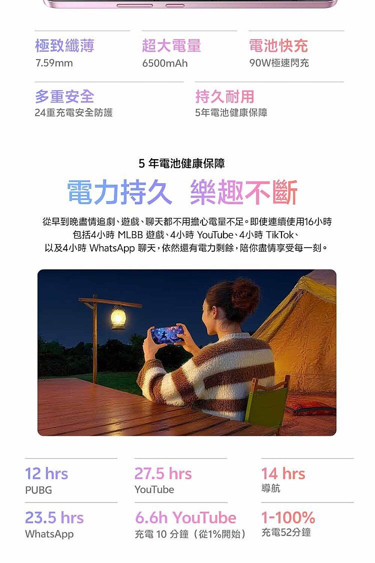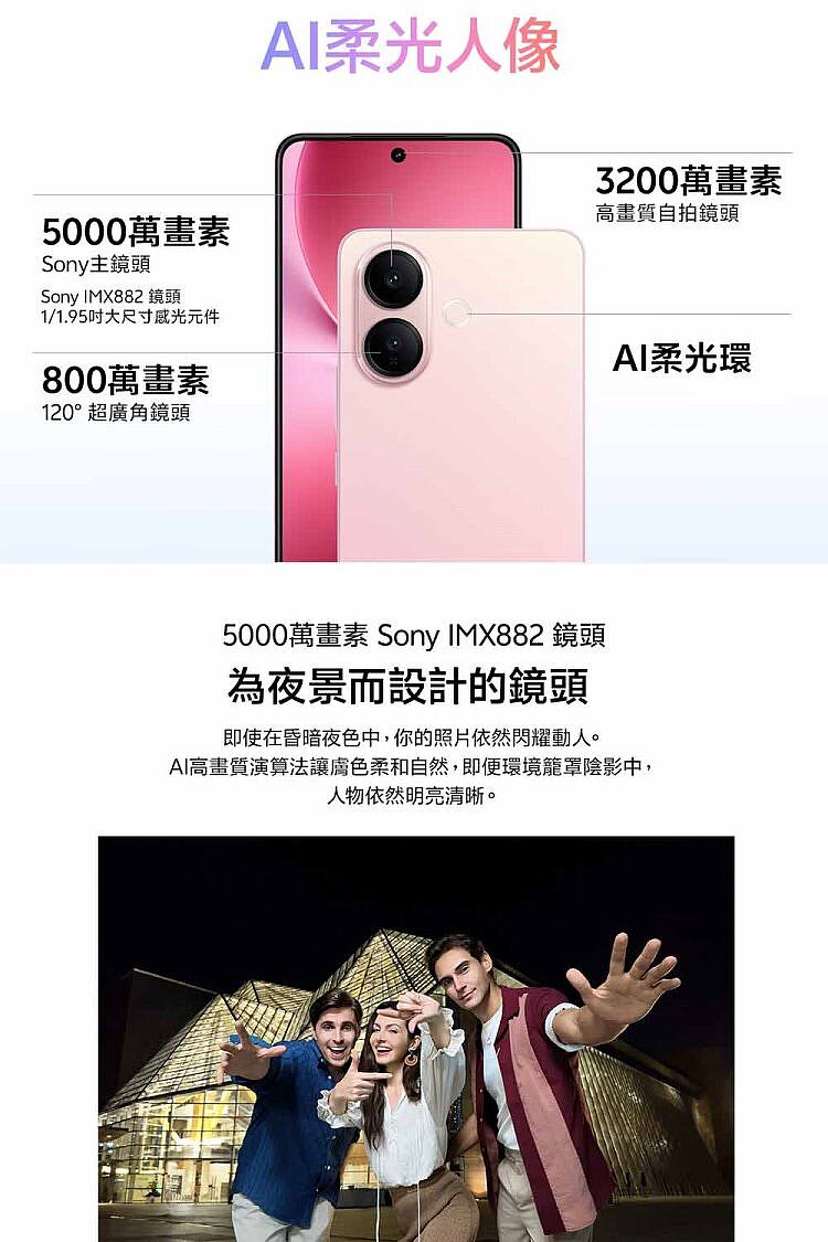 主相機鏡頭:後置鏡頭 5000萬畫素(Sony IMX882) + 800萬畫素