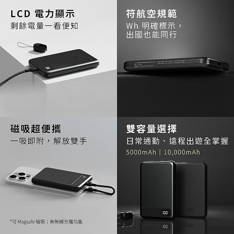✈️ 全球通行|5000 / 10000mAh,清楚標示 Wh 可帶上飛機