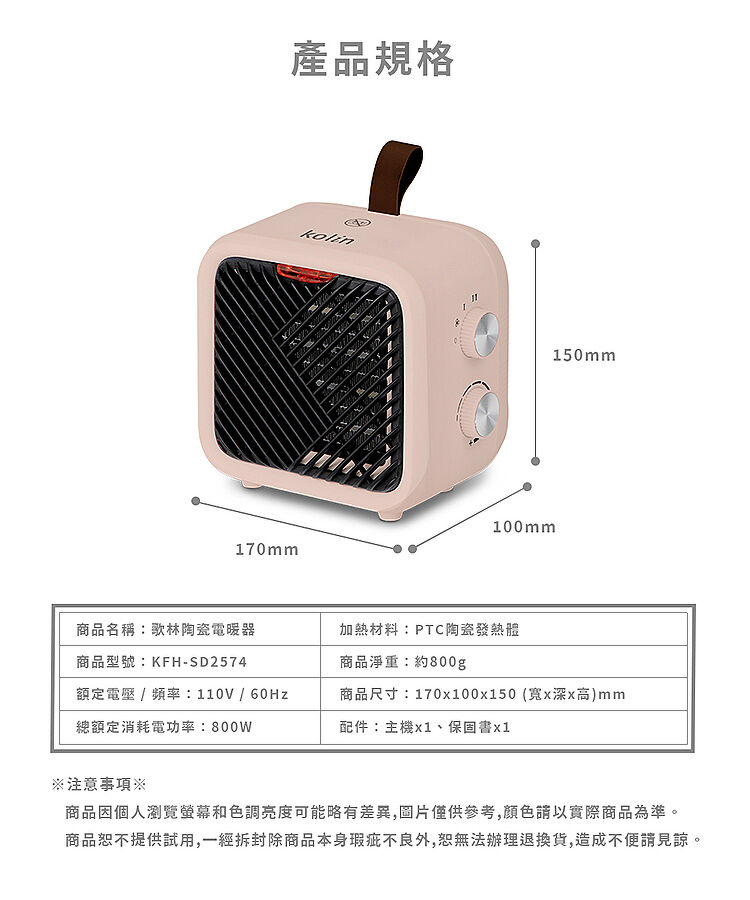 商品名稱:歌林陶瓷電暖器KFH-SD2574