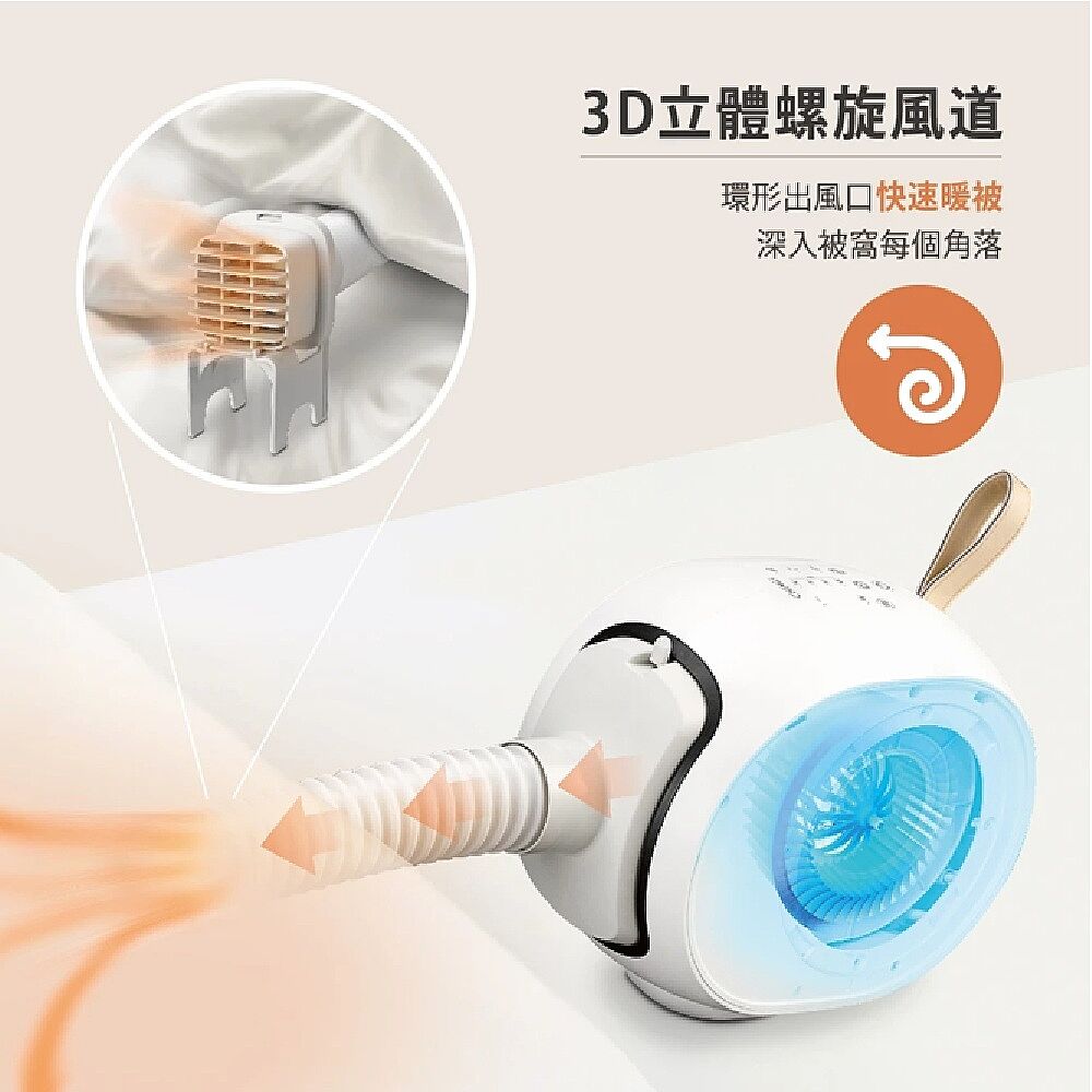 快速暖被: 3D立體螺旋風道,深入每個角落