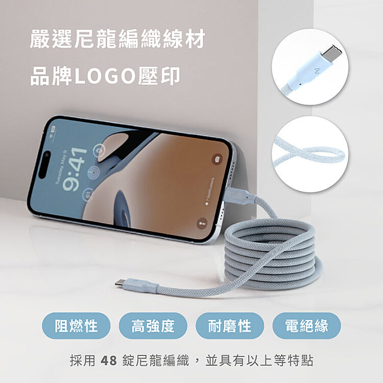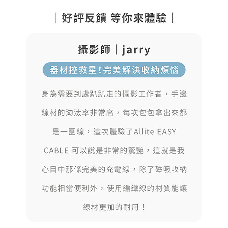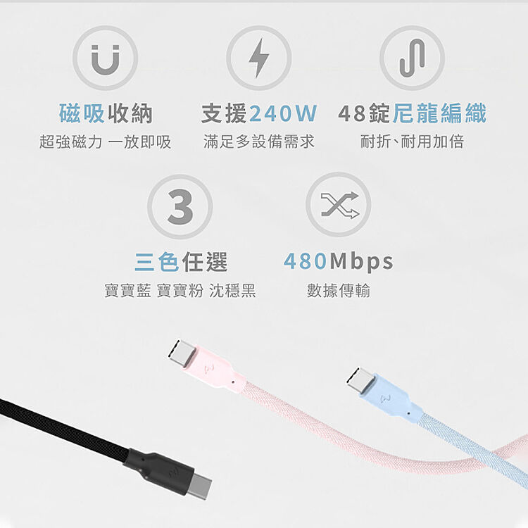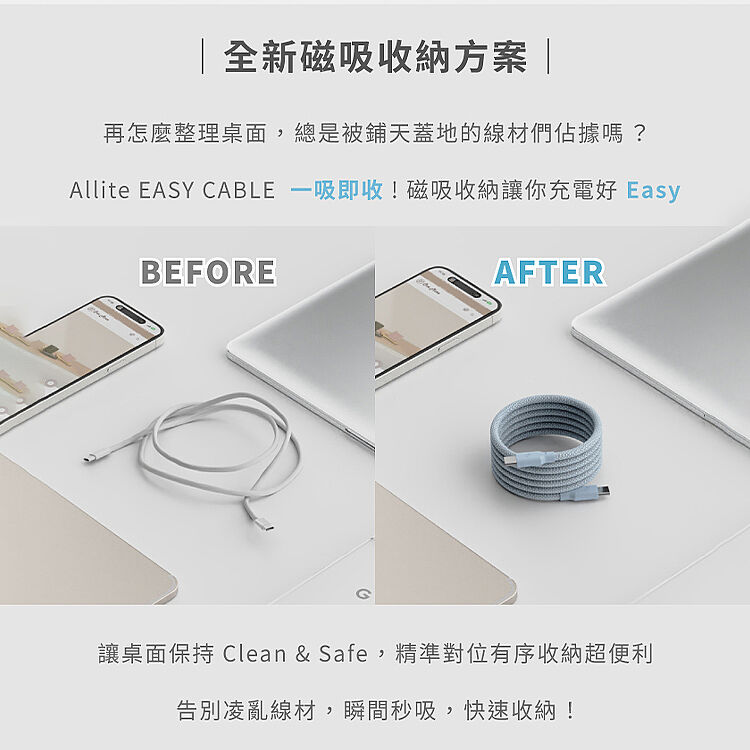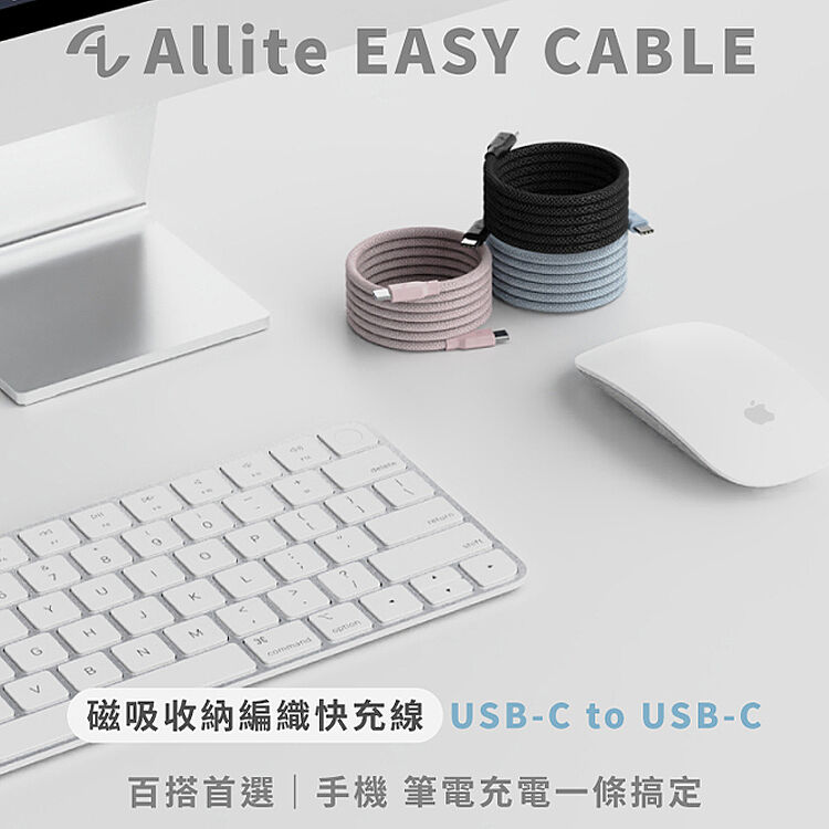 本商品內容物為: Allite EASY CABLE 磁吸收納編織快充線 240W Type-C to Type-C (USB-C to USB-C)-淺灰褐 *2