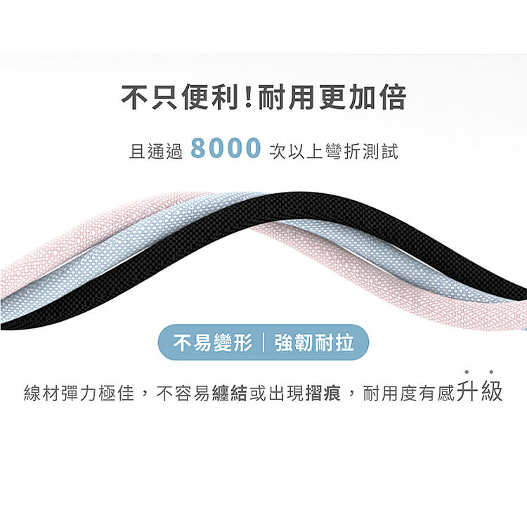 48錠尼龍編織 通過8000次彎折測試 耐折、耐用加倍