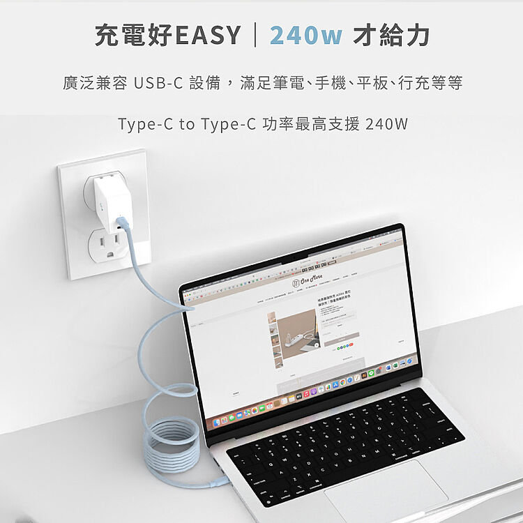 支援240W 『滿足多種設備的快充需求』手機、筆電充電 一條搞定