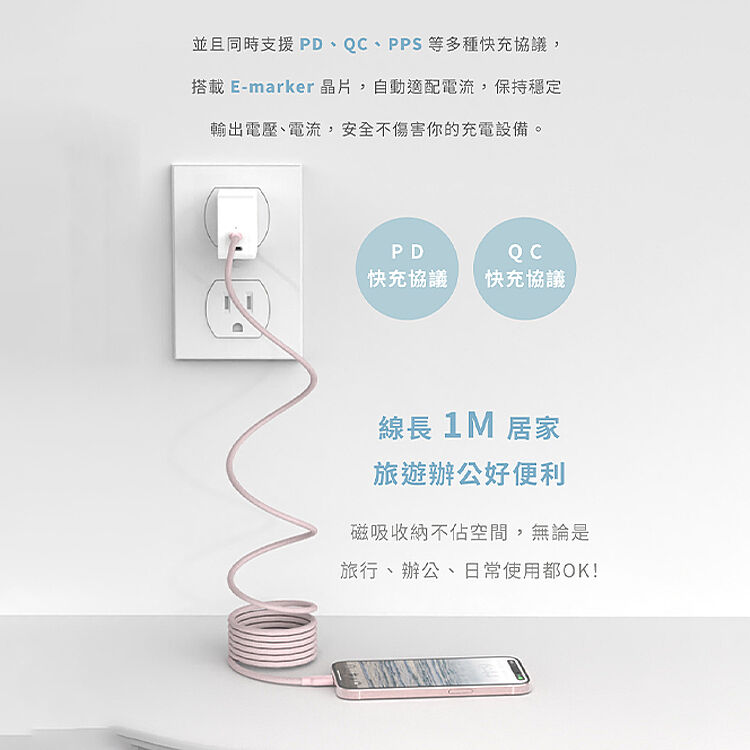 搭配E-marker晶片 自動適配電流 安全快充不傷設備