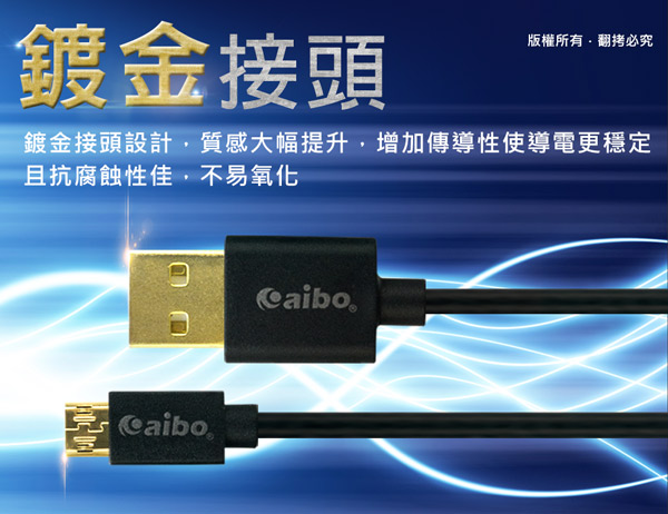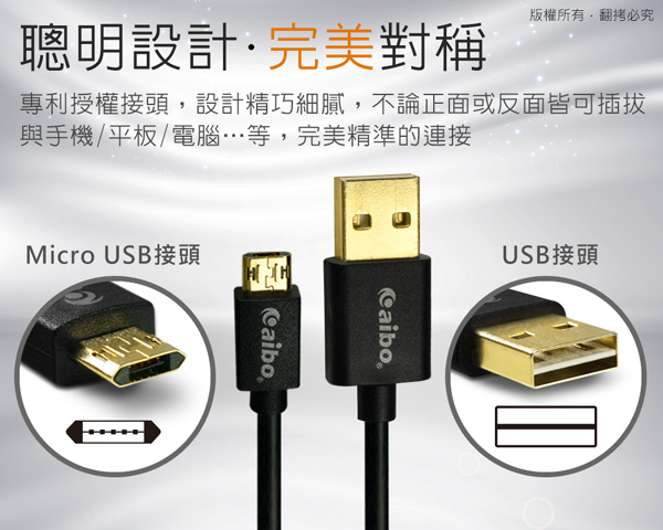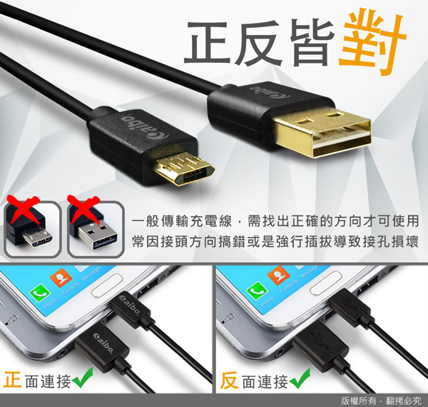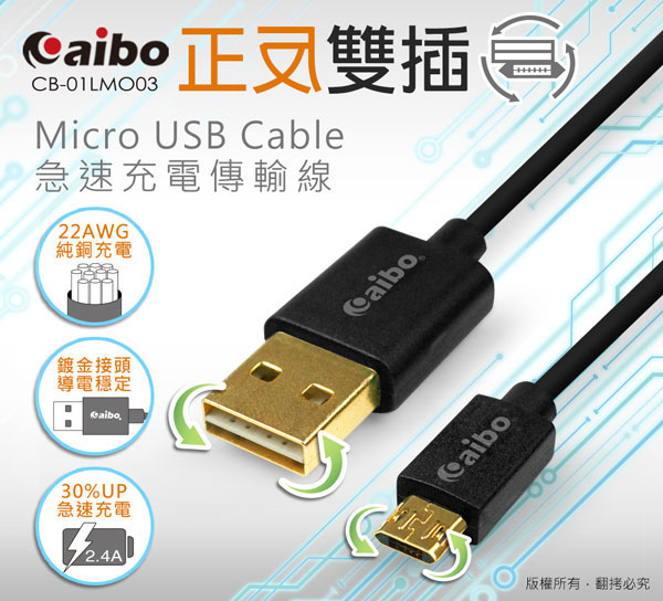 aibo 正反雙插 Micro USB 急速充電傳輸線(1M)