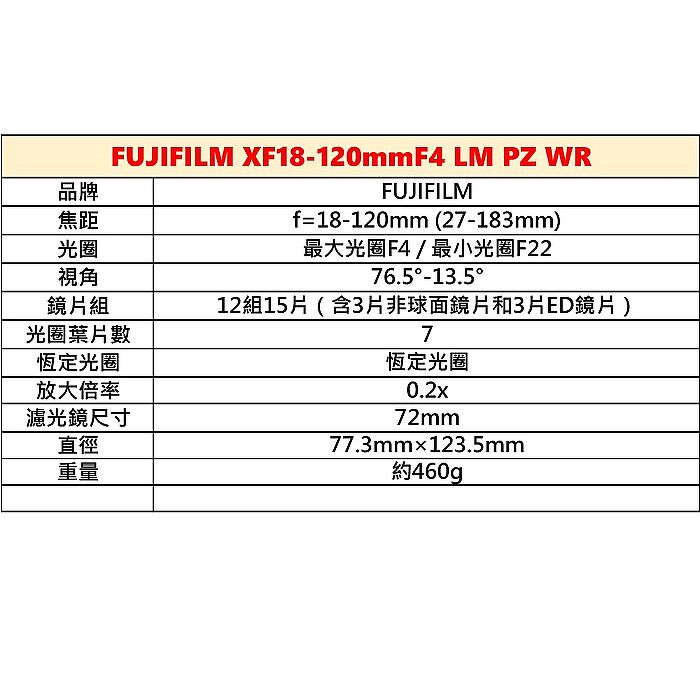 型號 XF18-120mmF4 LM PZ WR