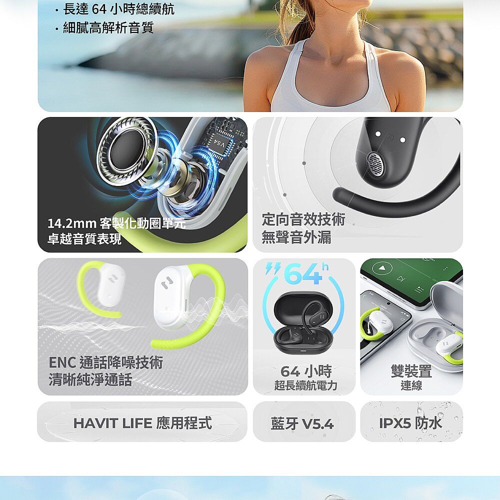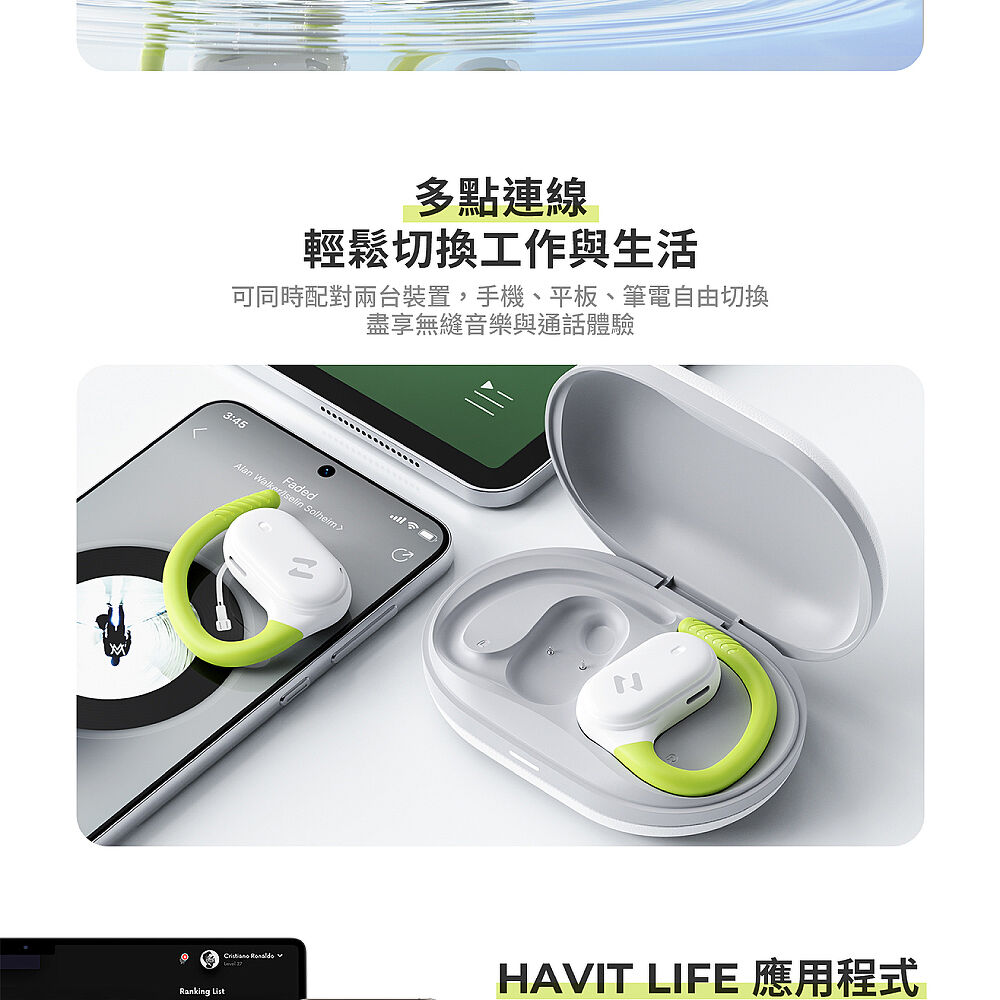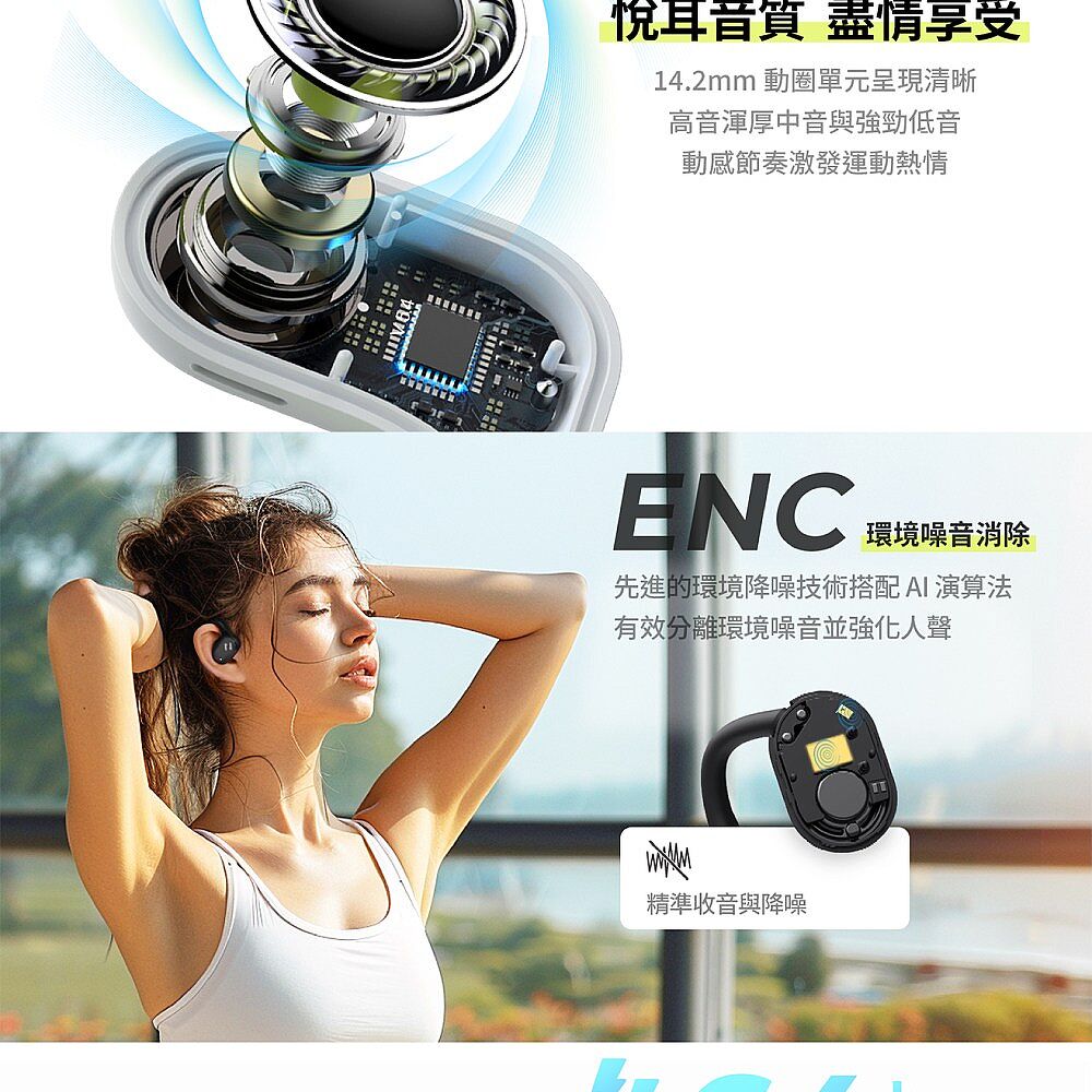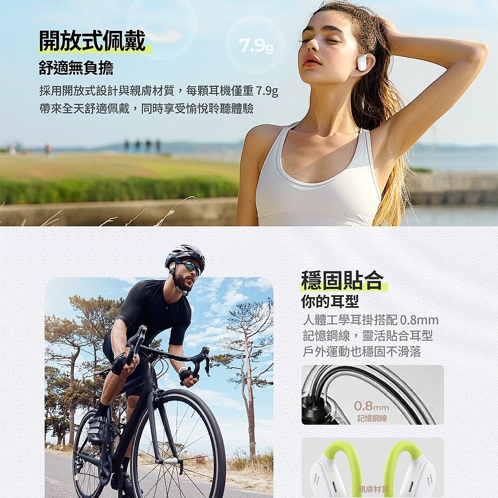 • 開放式骨傳導設計