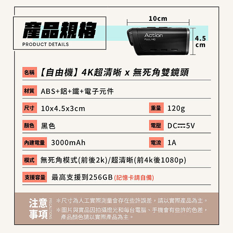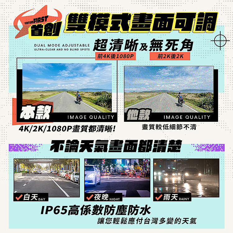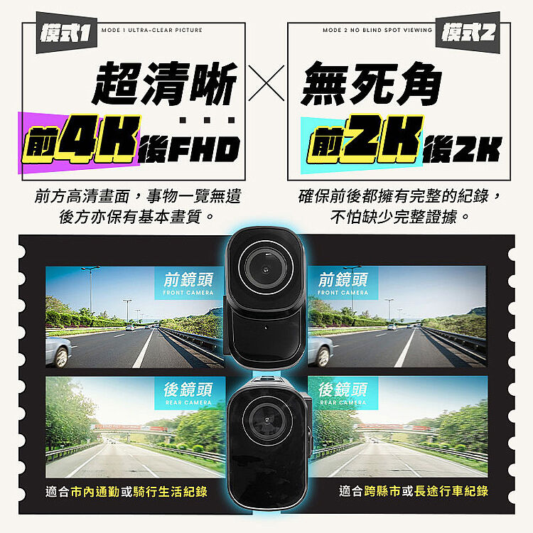 模式:無死角模式(前後2k)/超清晰(前4k後1080p)