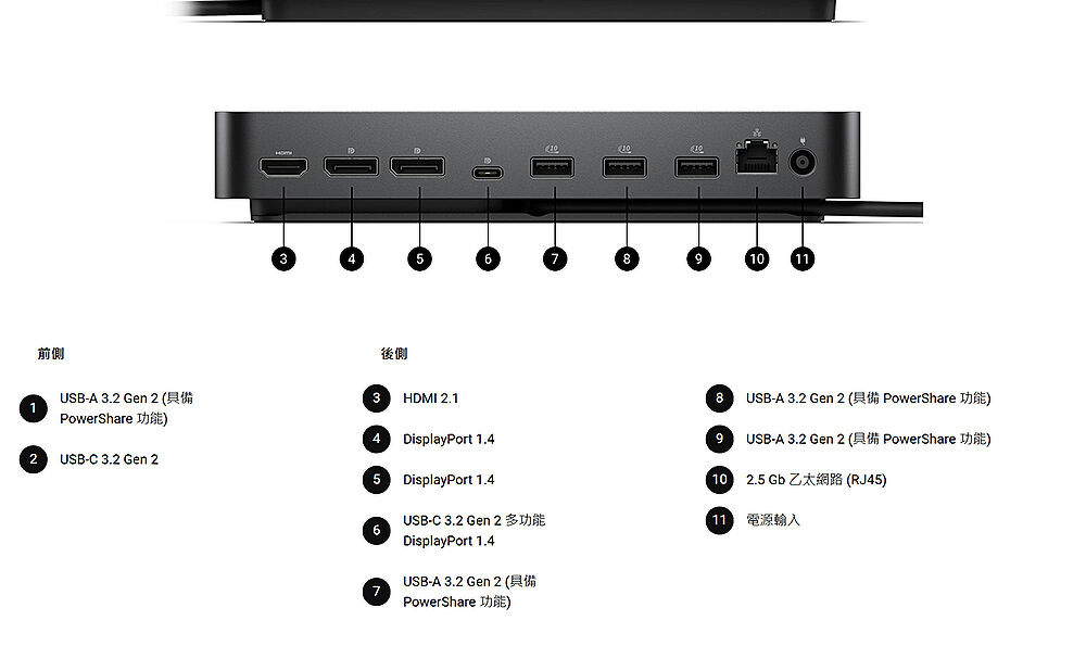 • 1 個 USB-C 3.2 Gen 2 多功能 DisplayPort 1.4