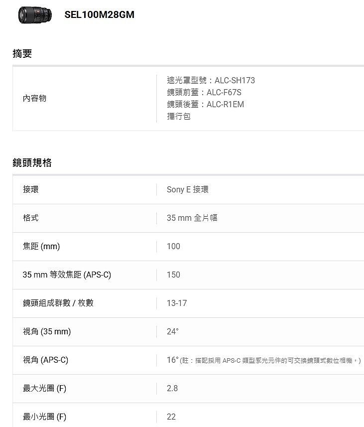 預購 Sony FE 100mm F2.8 Macro GM OSS SEL100M28GM (公司貨)