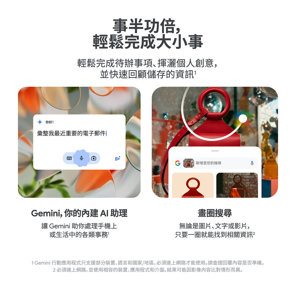• 內建 AI 助理 Gemini,可協助你發想創意、查詢資訊,迅速解決各種問題