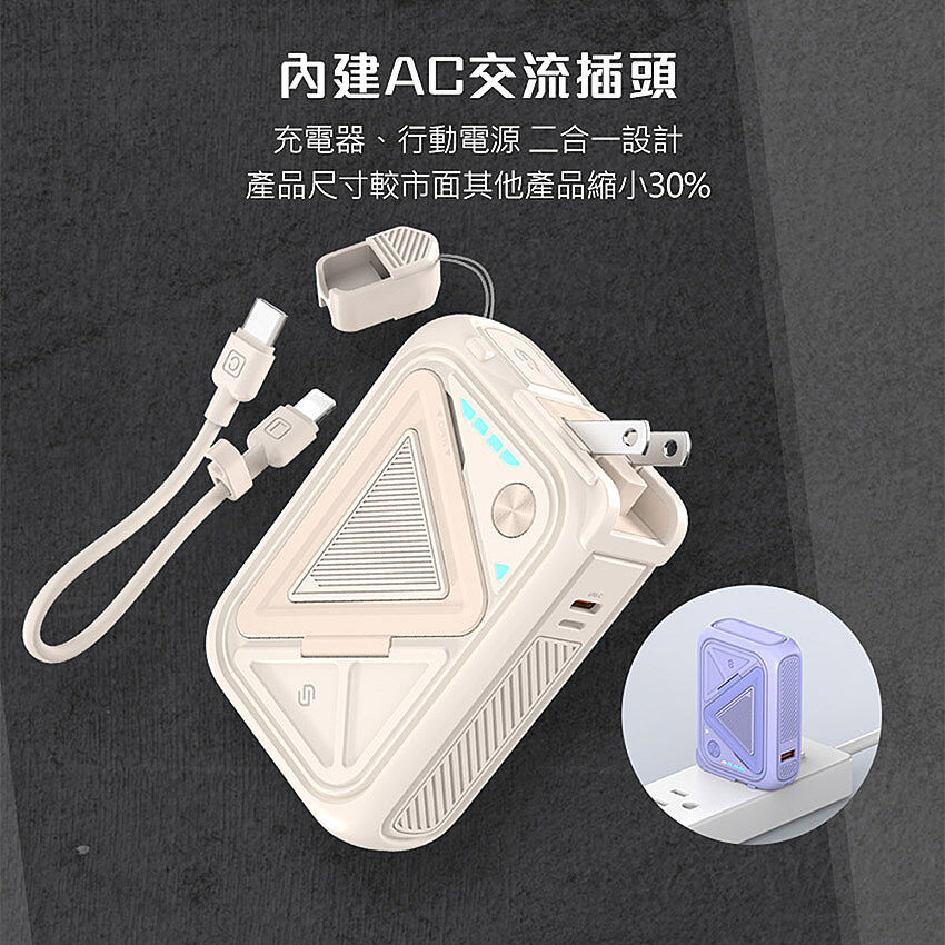 》內建AC交流電插頭,充電器、行動電源二合一設計