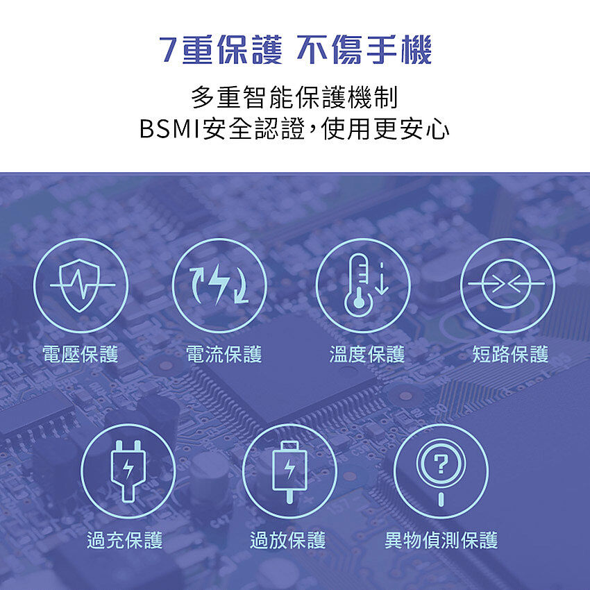 》內建電壓、電流、短路、過充、過放、溫度、異物偵測保護