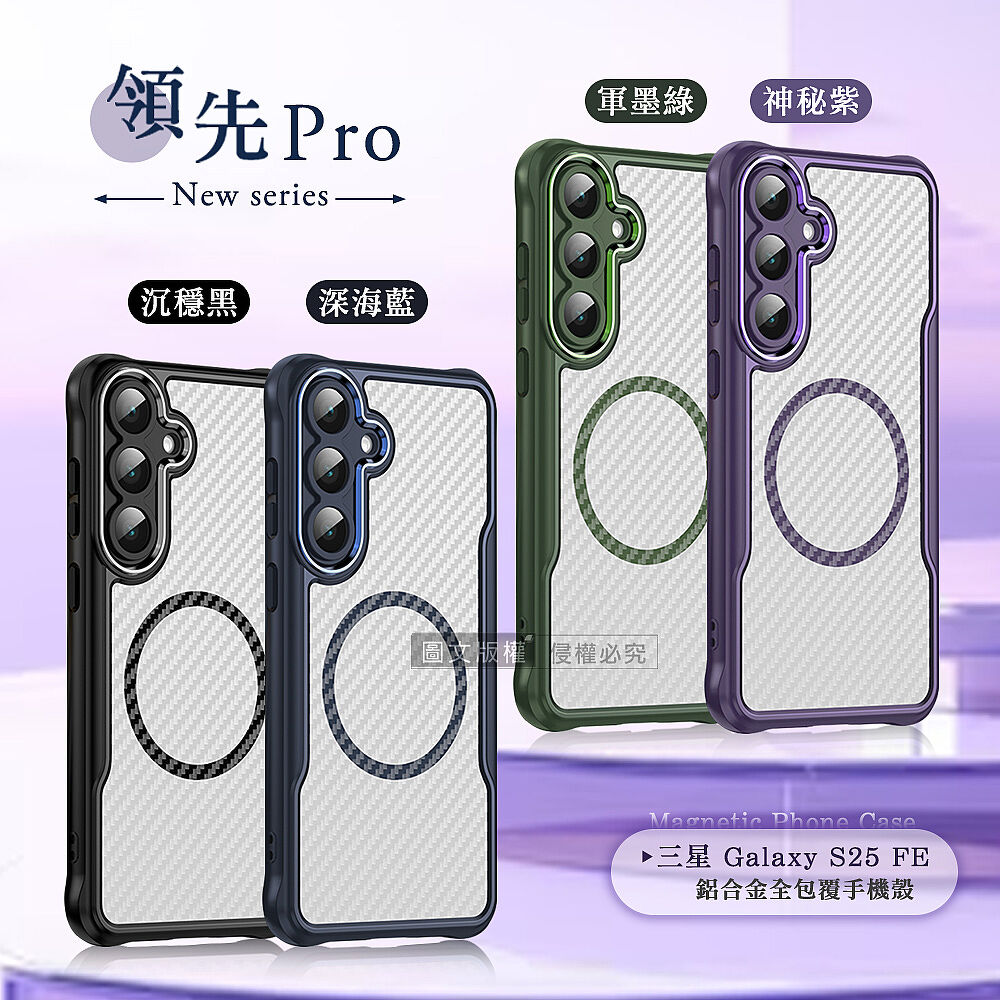 領先Pro 三星 Galaxy S25 FE 鋁合金鏡頭框 碳纖紋磁吸防摔殼 手機殼