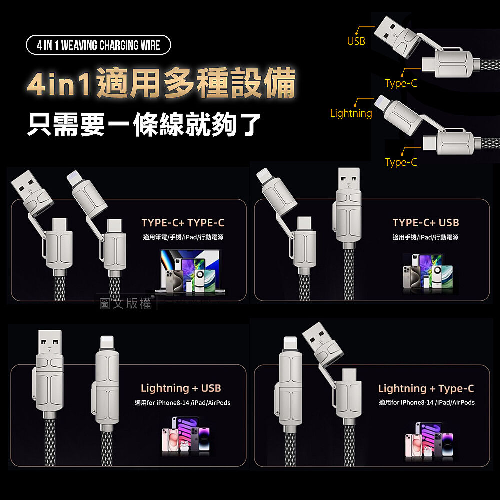 一條抵多款4合1快充充電線