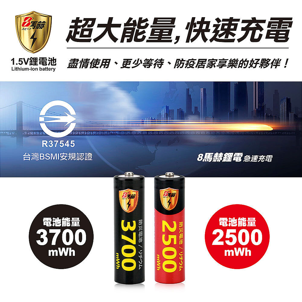 【8馬赫】3號/AA恆壓可充式1.5V鋰電池: